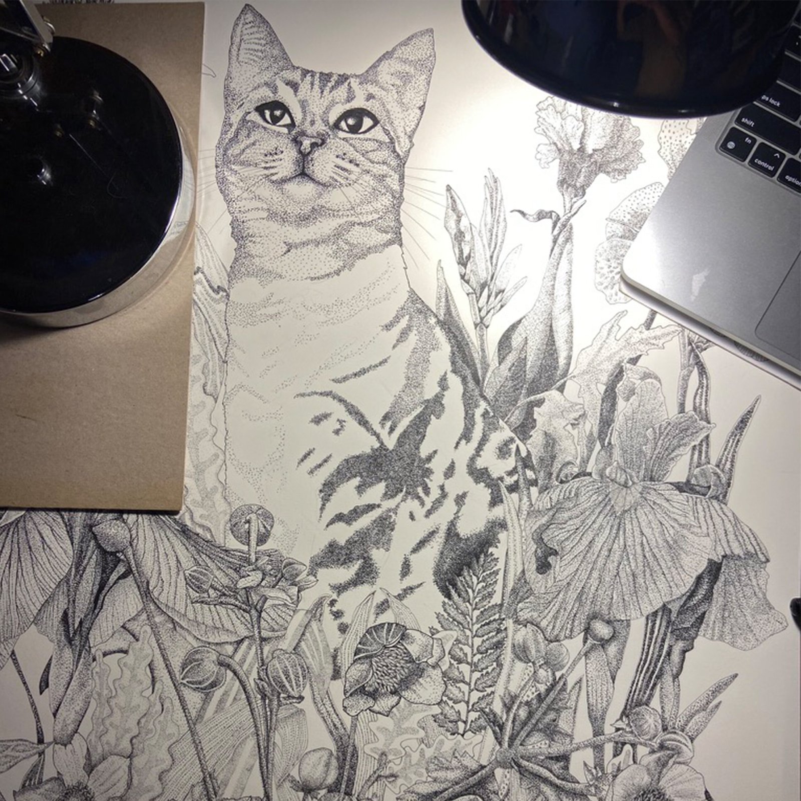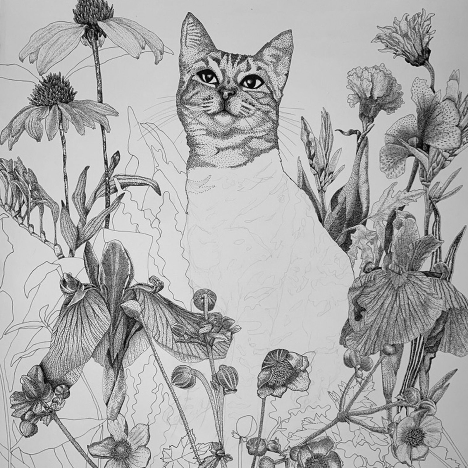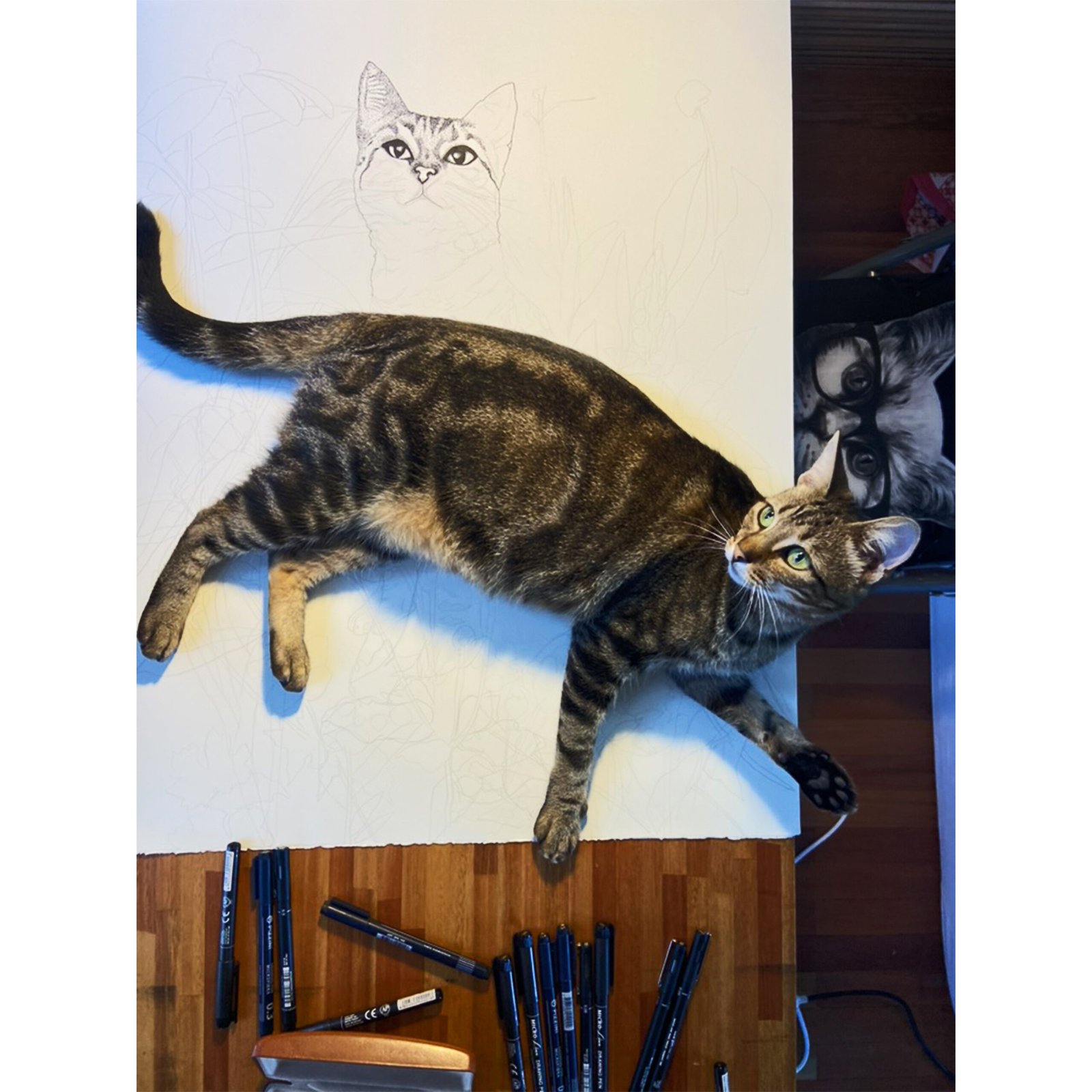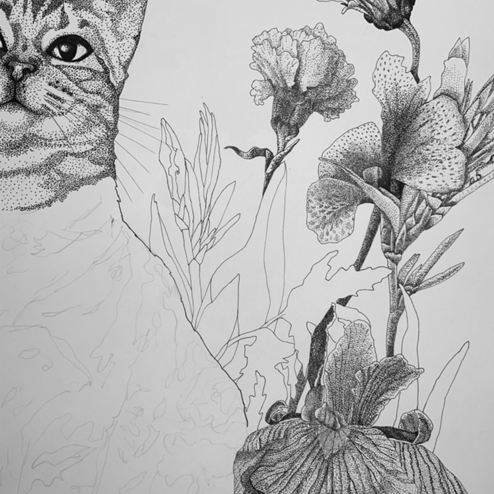(2025) Serie de retratos alegóricos. Técnica de ilustración con tinta sobre papel de algodón. 50×70 cm.