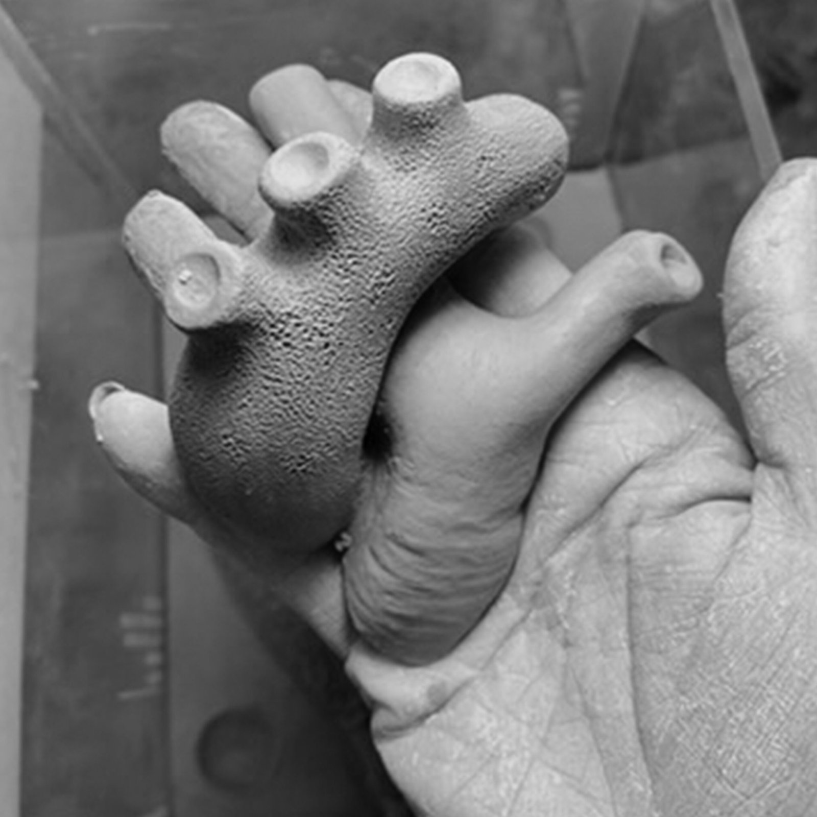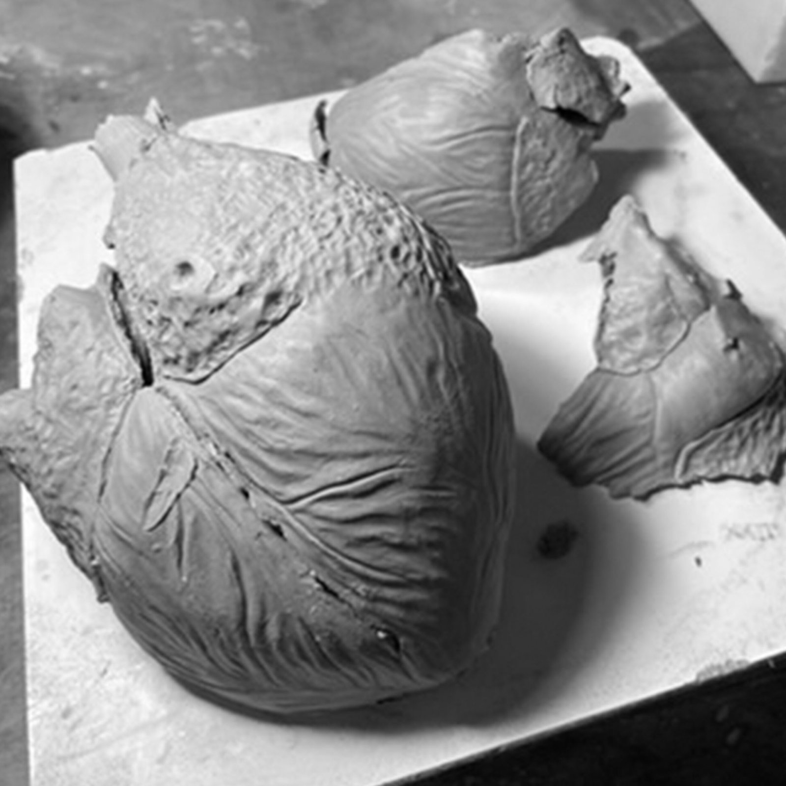 Estos corazones coralinos representan el estadío post-muerte de nuestro cuerpo emocional. Cuerpos que dejan al descubierto sus estructuras óseas y con el tiempo y la transformacion por el contacto con otras materias. Otras vidas crecen. La belleza de la profundidad de su transmutación y su inmortalización escultórica como registro de este proceso alquímico para transformar la experiencia personal en un diálogo universal.