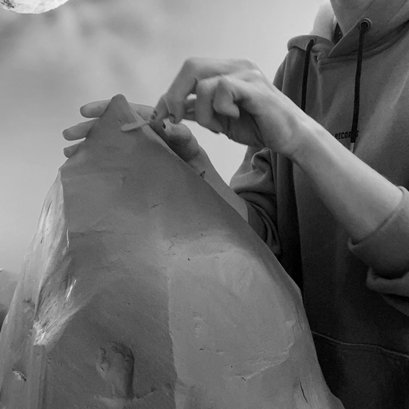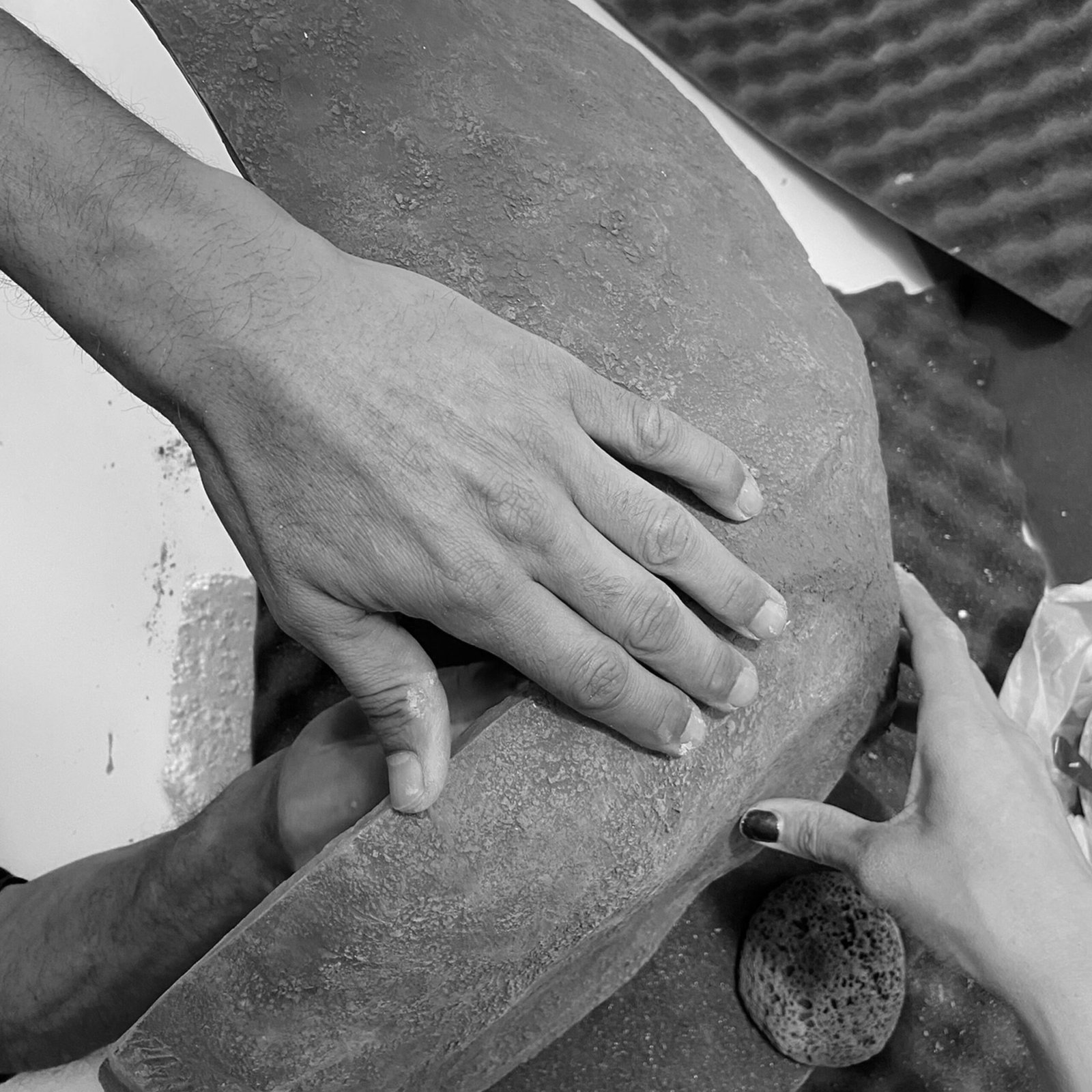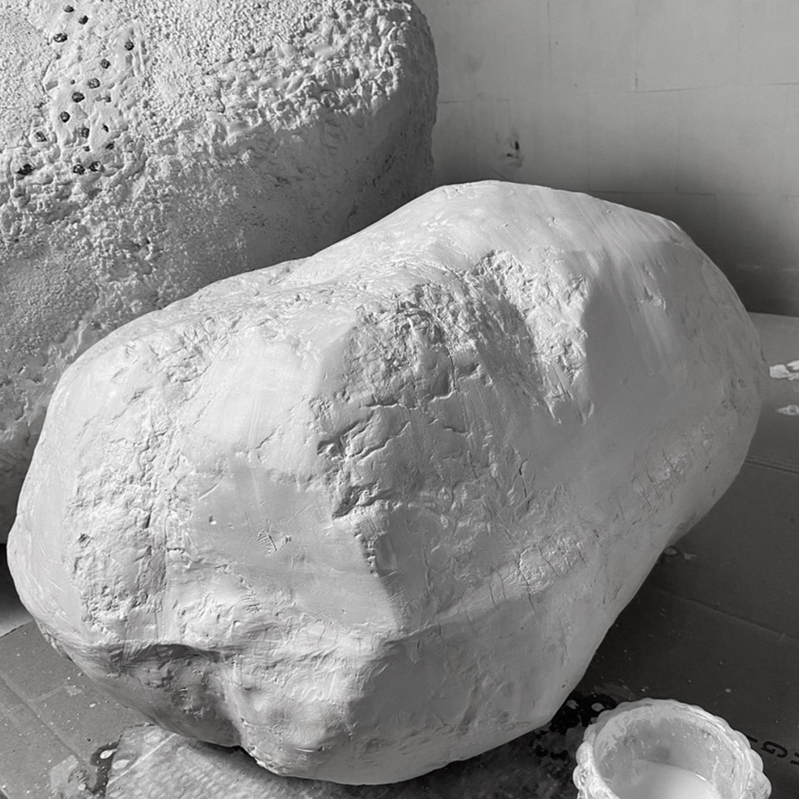 Encargo de serie de esculturas de gran escala, materialidad de cemento y cerámica para Martina Quesada, participante de la muestra “O. Es el fin y es el principio” de Laura Orcoyen. Buenos Aires, Noviembre 2023.